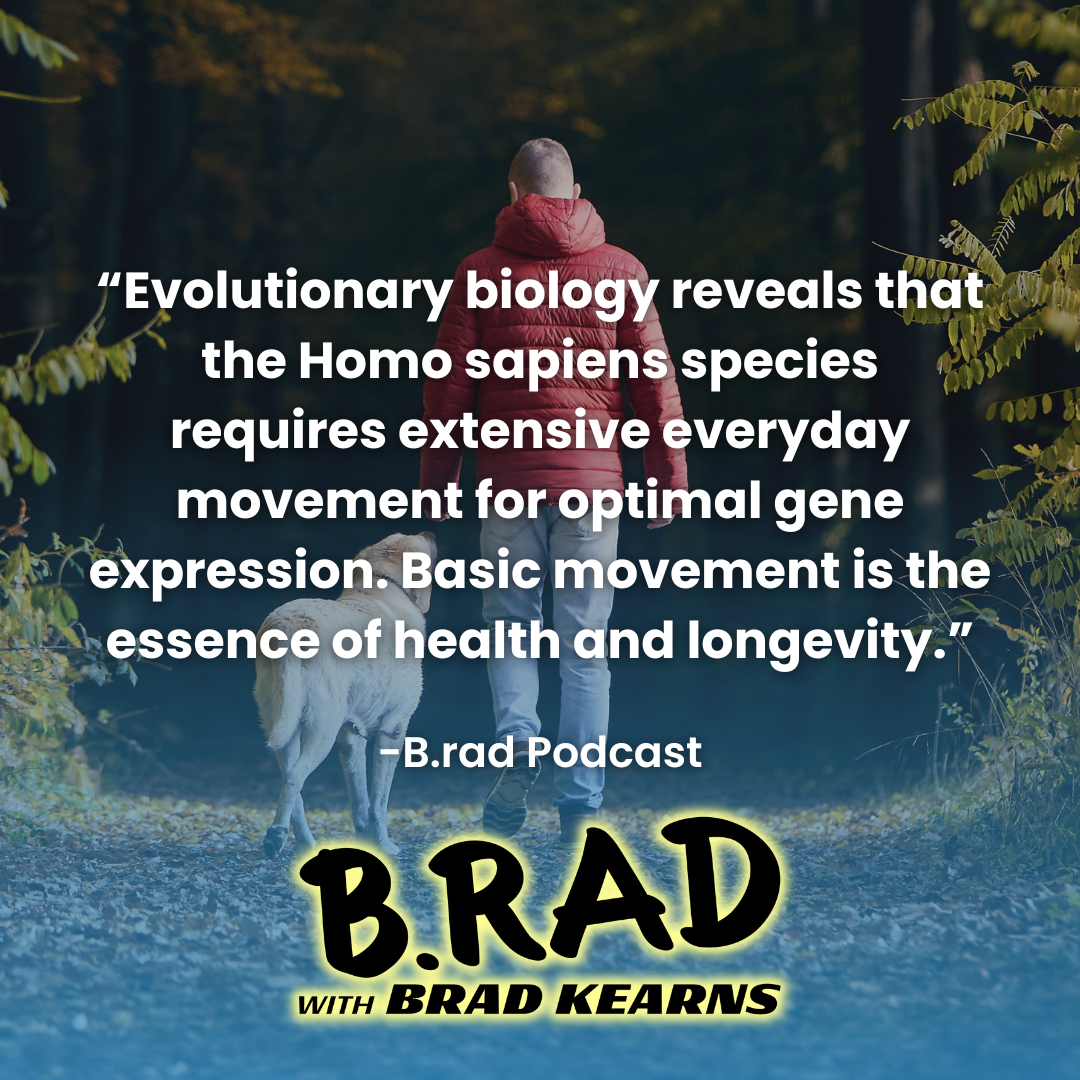 ’cause someone who has ample muscle mass and muscle strength is going to be doing a good job managing the caloric intake without causing chronically excessive insulin production. And those disease states that we hear about that are driven yes, by bad dietary choices, but they’re also driven by, uh, inactivity and lack of muscle, muscle strength, lack of demand on the muscles. So, moving more building and maintaining muscle mass. And the other fitness attributes. Number one I’m gonna say on this list is to develop a morning exercise routine. You can listen to my entire show on this subject. You can enroll in the online course at bradkearns.com and develop your own custom morning exercise routine. Mine has escalated in duration, degree of difficulty and importance in my life over the past six years. I have a streak going. I broke the streak when I got COVID recently, but I had every single day.